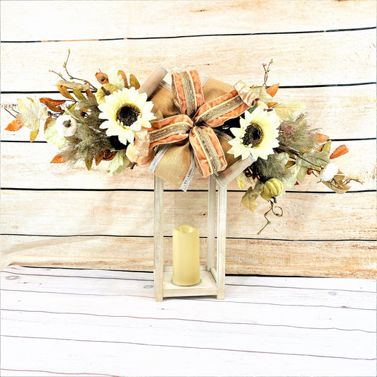 Fall Lantern Swag, Fall Pumpkin Swag, Boho Fall Lantern Swag, Thanksgiving Decor, Fall Wedding Decor, White Sunflower Swag