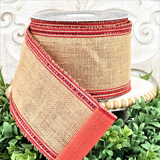 Farrisilk Burlap Ribbon, Red Ribbon, Sequin Ribbon, Red Jeweled Ribbon, 4 Inch Wired Ribbon, Summer Ribbon, Fall Ribbon, Christmas Ribbon,