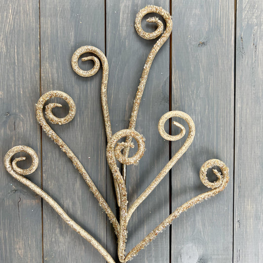 Farrisilk Champagne Gold Glittered Curly Candy Spray- Wreath Embellishment, Xmas Tree Decor, & Wedding Decor