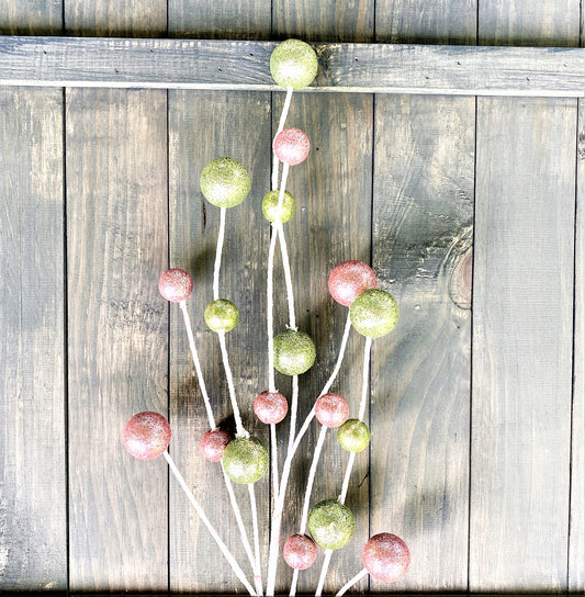 31" Glitter Cotton Candy Ball Spray, Pink and Mint Green Ball Spray, Pink and Mint Floral Spray, Wreath Attachment, Candy Theme Floral Stem