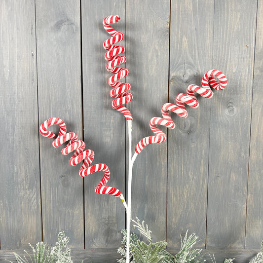 25" Swirl Candy Cane Spray, Peppermint Curly Spray, Peppermint Swirl Floral Stem, Candy Cane Floral Spray, Christmas Floral Stem,