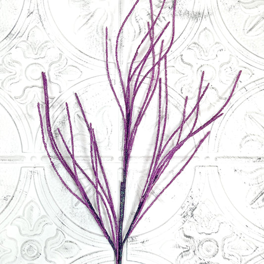 30" Purple Glitter Twig Spray | Halloween Wreath Accent | Sparkle Branch Pick | Fall Floral Stem | Glitter Twig Decor | Witchy Arrangement