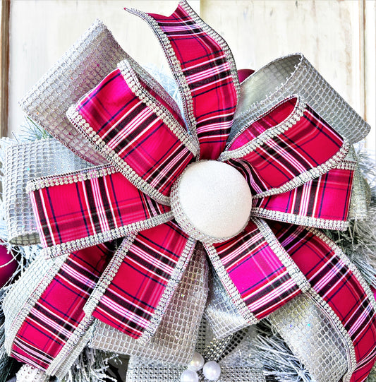 Pink Christmas Wreath for Front Door, Jeweled Christmas Wreath, Tartan Wreath, Glam Wreath, Elegant Christmas Wreath, Holiday Winter Decor
