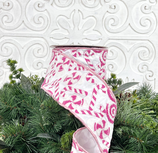 Pink and White Candy Ribbon, Farrisilk Candy Ribbon, Candy Cane Ribbon, Pink Christmas Ribbon, Holiday Candy Ribbon, Pink Peppermint Ribbon