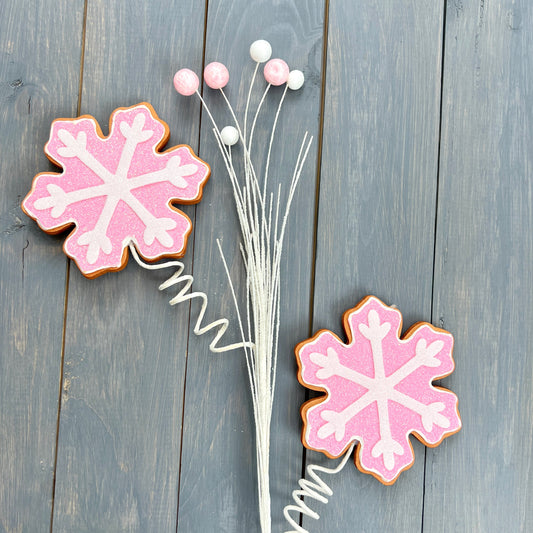 Pink Snowflake Cookie Spray, Gingerbread Cookie Spray, Pink Cookie Stem, Snowflake Cookie Stem, Glitter Snowflake Spray, Wreath Attachment