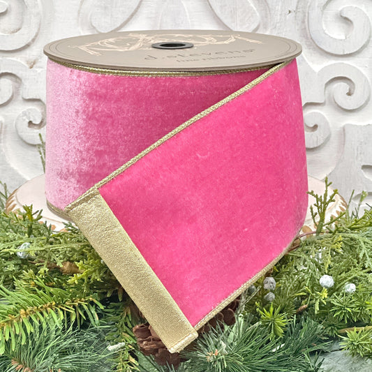 Pink Velvet Ribbon, Pink and Gold Velvet Ribbon, Dark Pink Velvet Ribbon, D Stevens Ribbon, Wired Pink Ribbon, Wreath Making Supply,