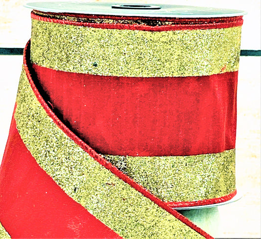 Red and Gold Glitter Ribbon, Gold Glitter Ribbon, Red Ribbon, Glitter Candy Ribbon, 4 Inch Wired Glitter Ribbon, Wreath Making Ribbon