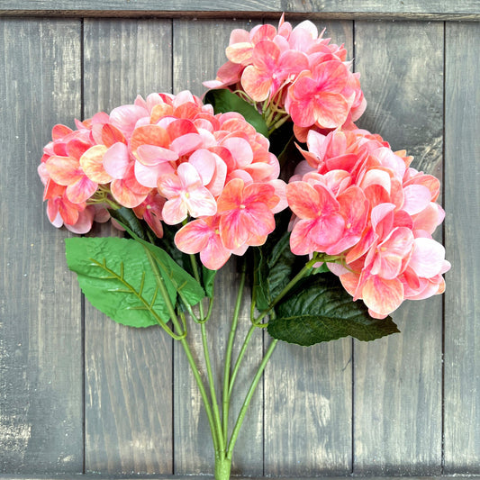 Real Touch Coral Hydrangea Bush, Lifelike Silk Hydrangeas, Faux Flowers for Spring & Summer Decor, Wedding Centerpiece Blooms