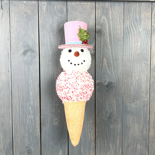 Whimsical 14" Pink Ice Cream Snowman Ornament—XL for Tree Decoration, Wreath Attachment, and Home Decor