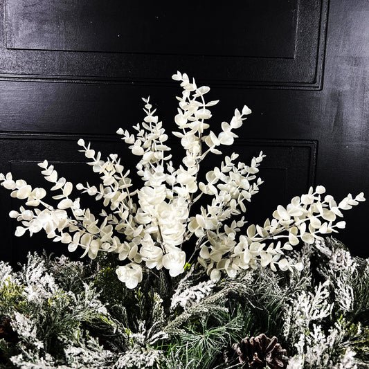 White Eucalyptus Bush, Faux Eucalyptus Stem, Holiday Greenery Pick, Winter Wedding Florals, Elegant Wreath Greenery