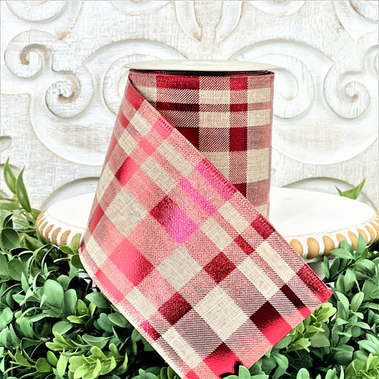 Red Plaid Christmas Ribbon, D Stevens Ribbon, Red Holiday Ribbon, Rustic Christmas Ribbon, Traditional Xmas Ribbon, Wreath Making Supply