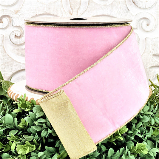 Pink Velvet Ribbon, Pink and Gold Velvet Ribbon, Strawberry Pink Velvet Ribbon, D Stevens Velvet Ribbon, Valentine Ribbon