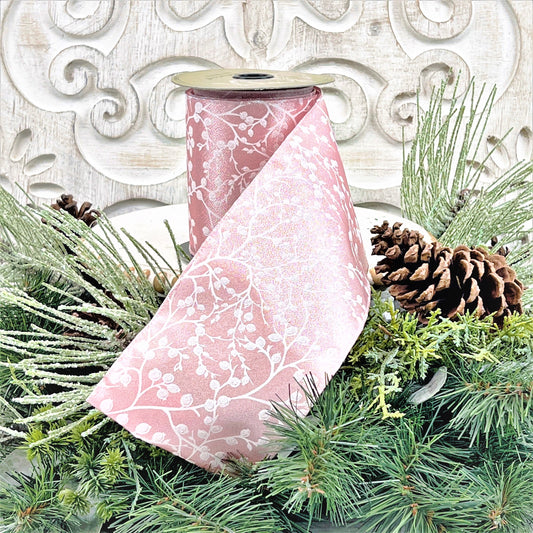Pink Glitter ribbon, Matte Foil Glitter Ribbon, Winter Berry Ribbon, Pink Christmas Ribbon, Glittered Berry Ribbon, Pink and White Ribbon