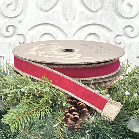 Hot Pink Velvet Ribbon, Pink and Gold Velvet Ribbon, 1 Inch Hot Pink Velvet Ribbon, D Stevens Ribbon, Valentines Day Ribbon