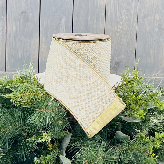 Iridescent Jewel Ribbon, Cream Jeweled Ribbon, D Stevens Iridescent Jewel Macrame Ribbon, 4" Cream Jeweled Ribbon, Christmas Ribbon,