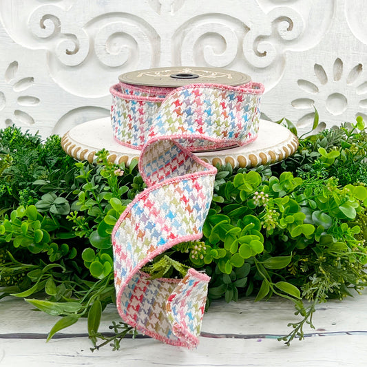 Pastel Houndstooth Ribbon, D Stevens Jacquard Houndstooth Ribbon, Pink Blue and Green Houndstooth Ribbon, Spring Plaid Ribbon, Easter Ribbon