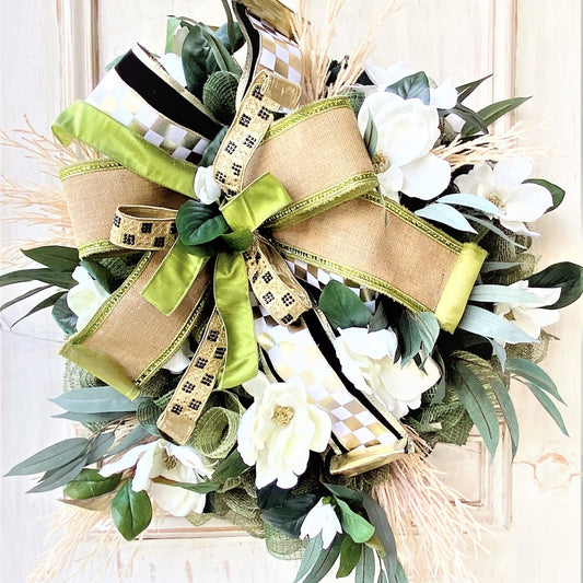 Magnolia Wreath for Front Door, Front Porch Decor, Large Spring Wreath, Outdoor Spring Wreath, All Season Magnolia Wreath, Everyday Wreath