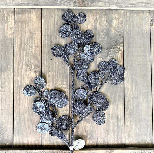 Blue Lunaria Leaf Spray, Glitter Lunaria Leaf Spray, Blue Glitter Floral Spray, Midnight Blue Floral Spray, Fall Floral Stem, Wreath Spray