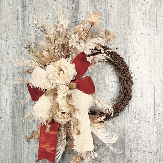 Fall Boho Wreath, Fall Floral Wreath, Fall Wreath for Front Door, Neutral Color Wreath, Modern Boho Wreath, Pampas Wreath