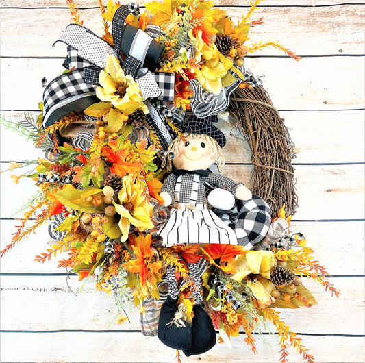 Large Scarecrow Wreath for Front Door, Pumpkin Wreath, Fall Scarecrow Wreath, Fall Wreath, Autumn Wreath, Magnolia Wreath, Scarecrow Wreath
