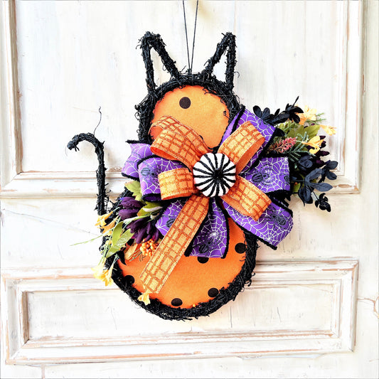 Halloween Cat Wreath, Halloween Cat Door Hanger, Halloween Wreath, Cat Wreath, Halloween Decor, Orange Wreath, Fall Porch Decor,