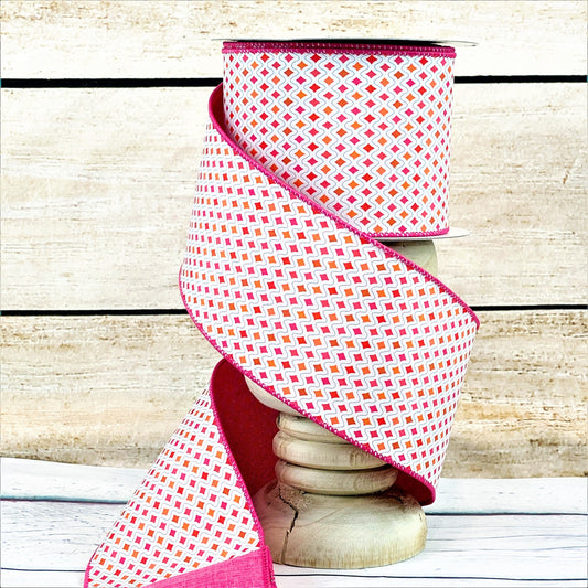Hot Pink and Orange Ribbon, Disco Diamond Ribbon, 4 inch wired ribbon, Wreath Supply, ribbon for bows, luxury ribbon, Farrisilk ribbon