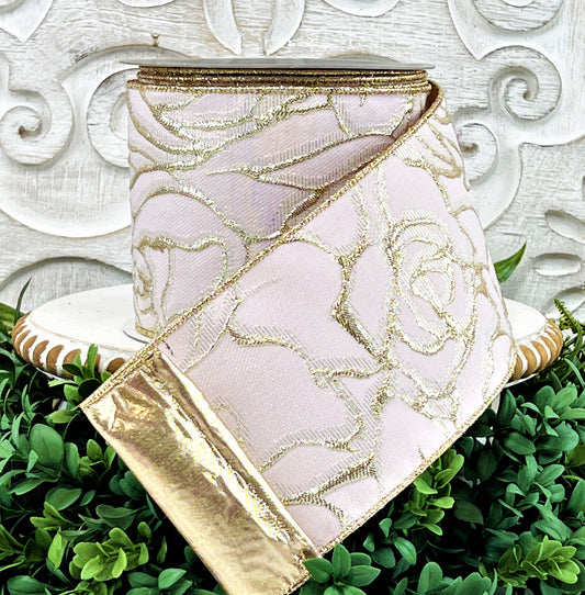 Light Pink Ribbon, Pink and Gold Ribbon, Rose Gold Ribbon, Pink Floral Ribbon, Farrisilk Ribbon, Pink Designer Ribbon, Wreath Making Ribbon