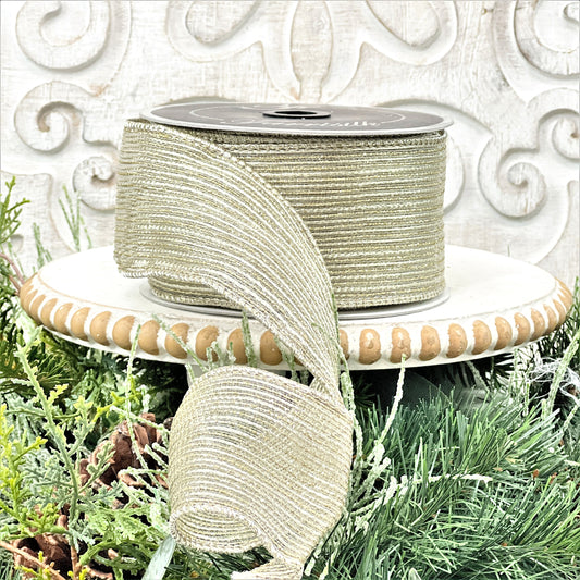 Platinum Ribbon, Farrisilk Tinsel Shimmer Ribbon, 2.5" Metallic Platinum Ribbon, Wired Silver Ribbon, Holiday Ribbon, Silver Mesh Ribbon