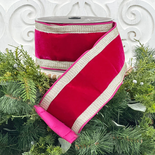 Hot Pink Velvet Ribbon, Jeweled Velvet Ribbon, Pink Velvet Ribbon, Valentines Ribbon, Farrisilk Ribbon, Jewel Trim Ribbon,