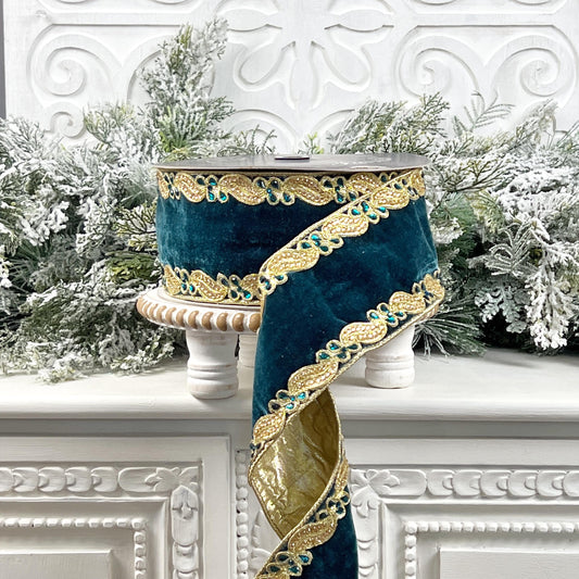 Farrisilk Midnight Blue Jeweled Velvet Ribbon - Luxury Designer Trim for Special Events & Holiday Decor