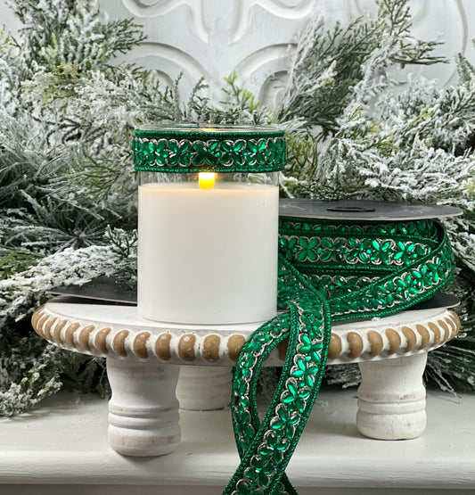 Farrisilk Jewel Accent Ornamate - Emerald Green, Designer Adhesive Ribbon with Jewelled Trim