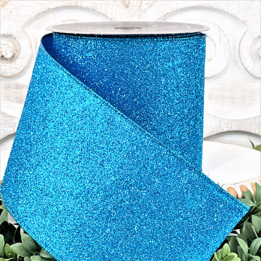 Turquoise Glitter Ribbon, 4 Inch Blue Glitter Ribbon, Farrisilk Diamond Dust Ribbon, Wired Blue Ribbon, Turquoise Ribbon, Blue Xmas Ribbon