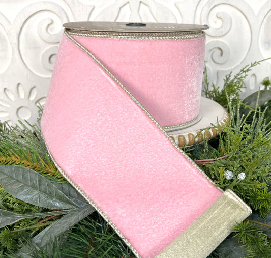 Farrisilk Designer Pink Velvet Ribbon - Luxury Wired Floral Ribbon for Christmas & Holiday Decor