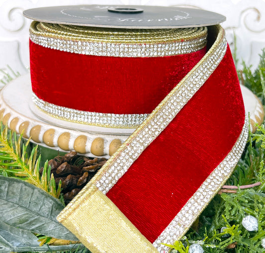 Farrisilk Red Winter Diamonds Ribbon - Jeweled Velvet Rhinestone Trim for Elegant Decor