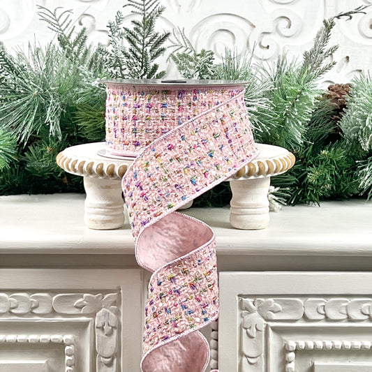 Farrisilk Confetti Tweed Ribbon - Luxury Sequin Pink Designer Ribbon for Festive Decorations and Couture Creations