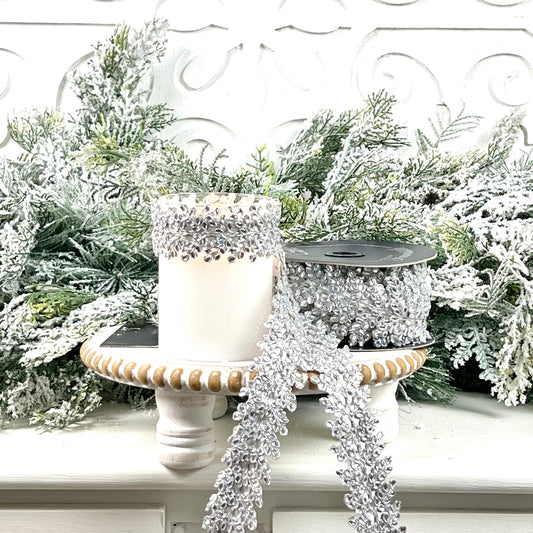 Farrisilk Crystal Trim Ornamate - Silver, Designer Adhesive Ribbon with Jeweled Trim
