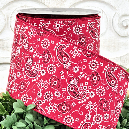 Red Paisley Ribbon, Paisley Print Ribbon, Bandana Print Ribbon, Summer Ribbon Western Theme Ribbon, Cowboy Ribbon, Vintage Paisley