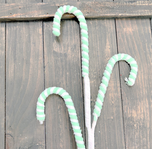 Frosted Pastel Candy Cane Spray, Frosted Candy Cane Spray, Mint Green Cane Cane, Green and White Candy Cane Spray, Christmas Decoration