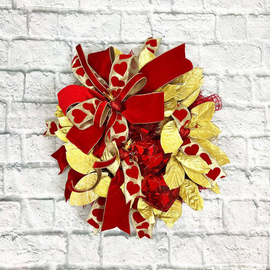 Luxurious Red and Gold Jeweled Valentine Wreath with Magnolia Leaves, Jeweled Valentine Wreath, Red Heart Wreath, Winter Wedding Decor,