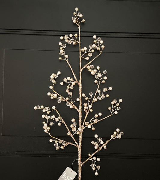 Champagne Pearl Glitter Spray – 33" Jeweled Christmas Tree Floral Spray, Holiday Wreath Pick, Pearl Wedding Floral Stem for DIY Designers