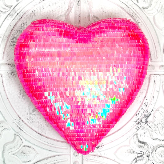 Pink Sequin Heart Ornament – 9" Wreath Embellishment, Valentine's Day Decor, DIY Craft Supply, Shimmer Heart Accent for Wreaths & Florals