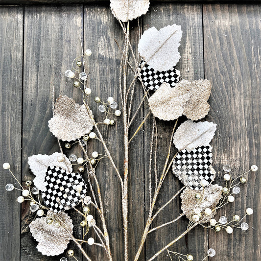 Gilded Harlequin Spray, Fall Floral Spray, Christmas Floral, Mark Roberts Harlequin Floral Spray, Gold Floral Spray, Black and White Floral