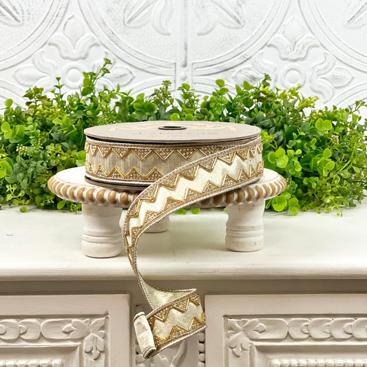 D. Stevens Winter White and Gold Sequin Trim Ribbon, Dupion Bourges Ribbon with Bullion Embroidery, Jeweled Ribbon | Wedding & Holiday Decor