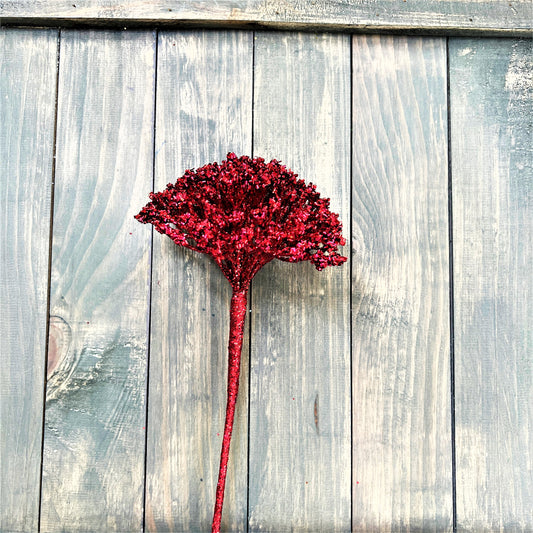 Glittered Dandelion Spray, Burgundy Floral Spray, Burgundy Glitter and Bead Cluster Spray, Burgundy Floral Stem, 4th of July Decor