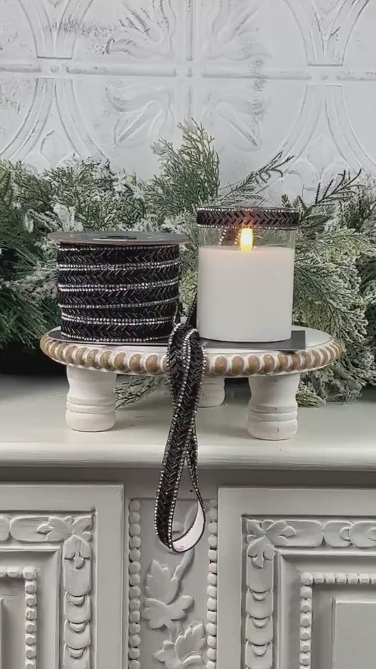 Farrisilk Black Baguette Jewel Ornamate, Self-Adhesive Black Ribbon with Rhinestones, Elegant Designer Trim for Holiday or Event Decor