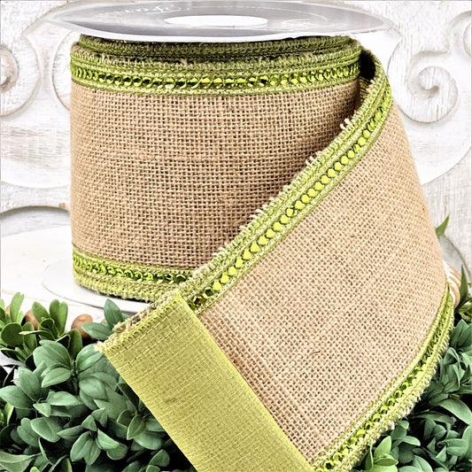 Burlap Ribbon, Lime Green Ribbon, Sequin Ribbon, Jeweled Ribbon, 4 Inch Wired Ribbon, Fall Ribbon, Halloween Ribbon, Summer Ribbon,