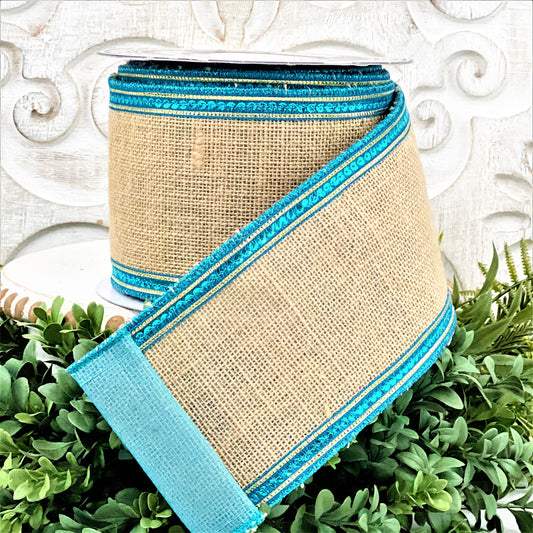 Burlap Ribbon, Turquoise Ribbon, Sequin Ribbon, Jeweled Ribbon, 4 Inch Wired Ribbon, Summer Ribbon, Fall Ribbon, Christmas Ribbon