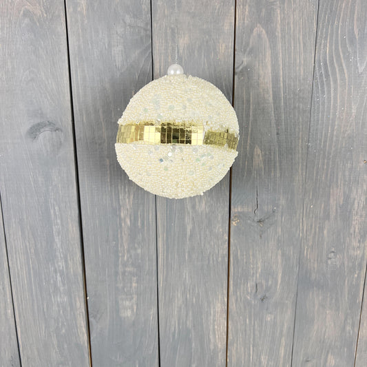 Shimmering Sequin Disco Stripe Christmas Ornament - Gold and White Retro Design