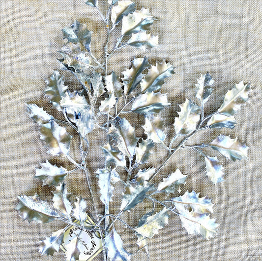 Silver Holly Spray, Silver Floral Spray, Mark Roberts Shiny Leaf Spray Spray, Silver Christmas Spray, Christmas Floral Stem, Silver Floral