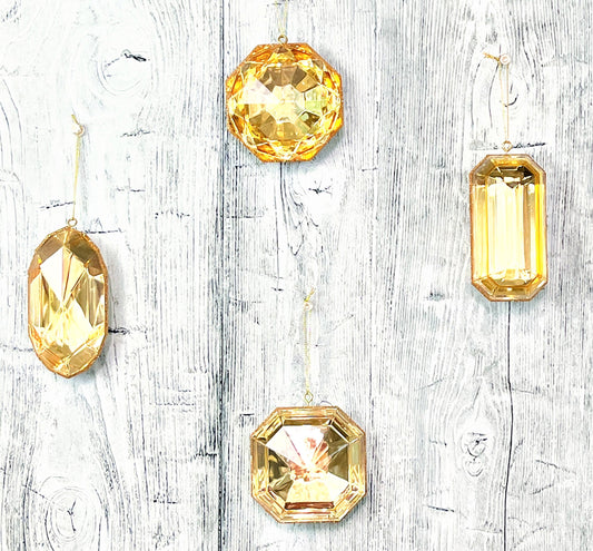 Jewel Ornament Set, Gold Jewel Ornaments, Gem Ornaments, Acrylic Jewel Ornament Set, Wreath Attachments, Gold Xmas Decor, Farrisilk Ornament